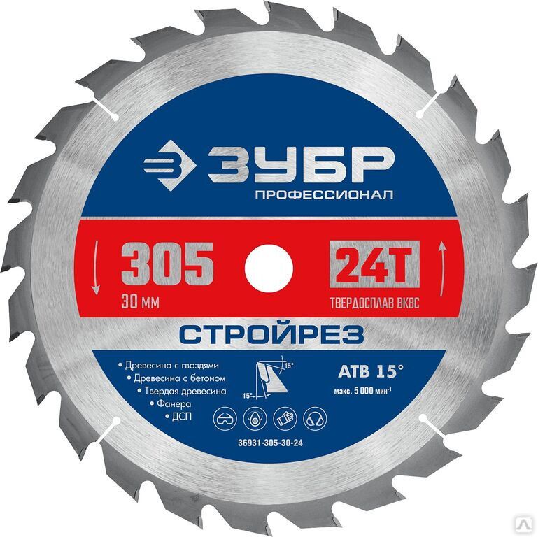 Читать все статьиСтройрез 305х30 мм 24Т, диск пильный по строительной древесине ЗУБР