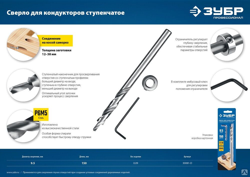 Читать все статьиСверло для кондукторов ступенчатое, 95х150 мм ЗУБР