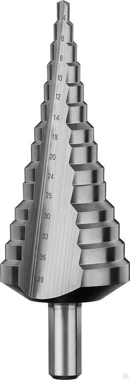 Читать все статьиСверло ступенчатое, 4-39 мм, 14 ступеней, ЗУБР, серия Профессионал