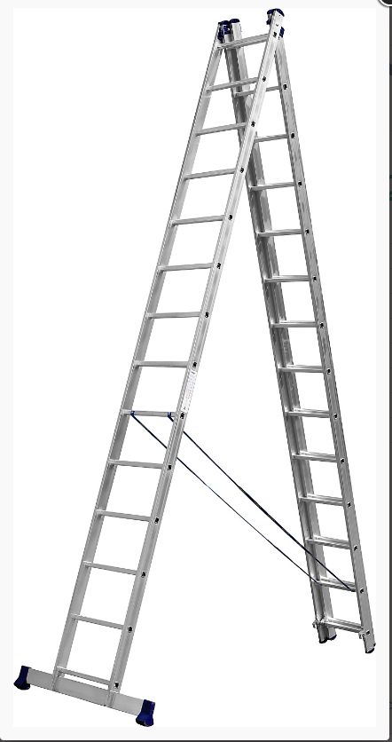 Читать все статьиТрёхсекционная лестница СИБИН, 12 ступеней, со стабилизатором, алюминиевая