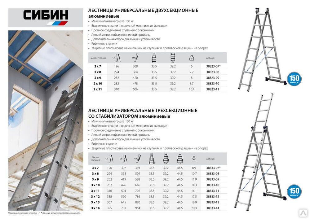 Читать все статьиТрехсекционная лестница СИБИН, 10 ступеней, со стабилизатором, алюминиевая