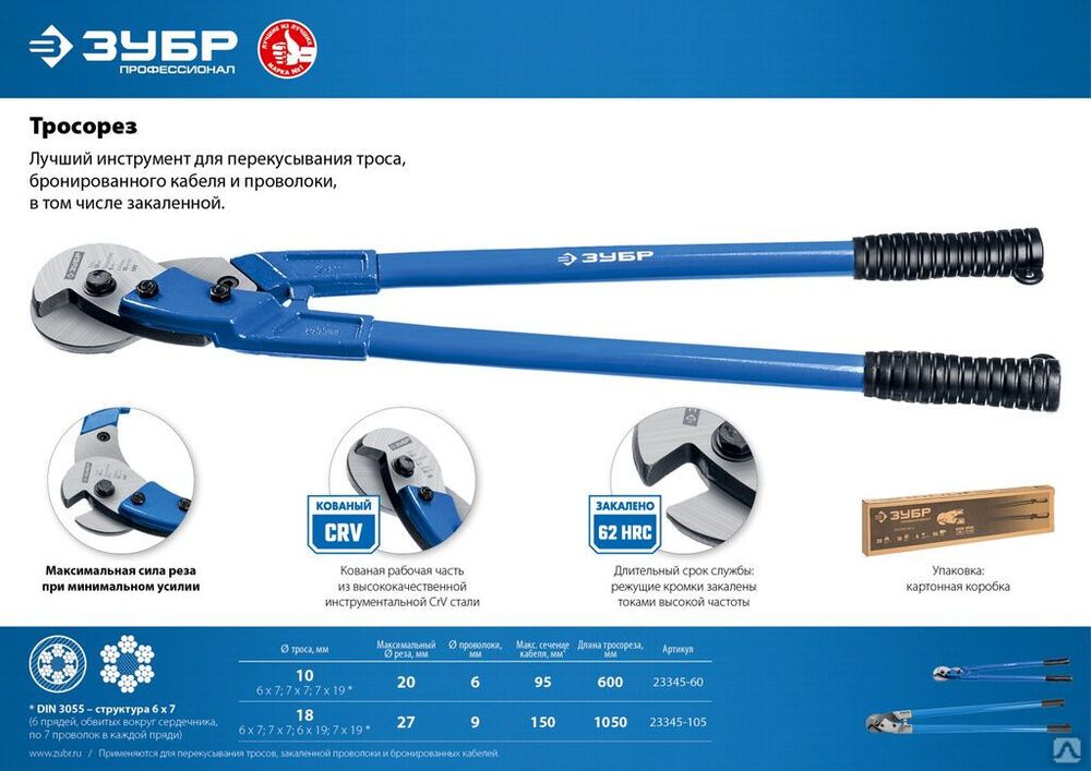 Читать все статьиТросорез ЗУБР d18 / 1050 мм