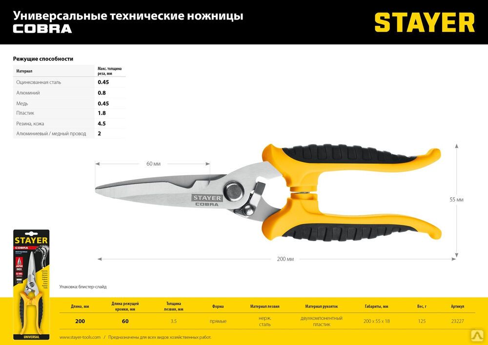 Читать все статьиУниверсальные технические ножницы STAYER COBRA 200 мм