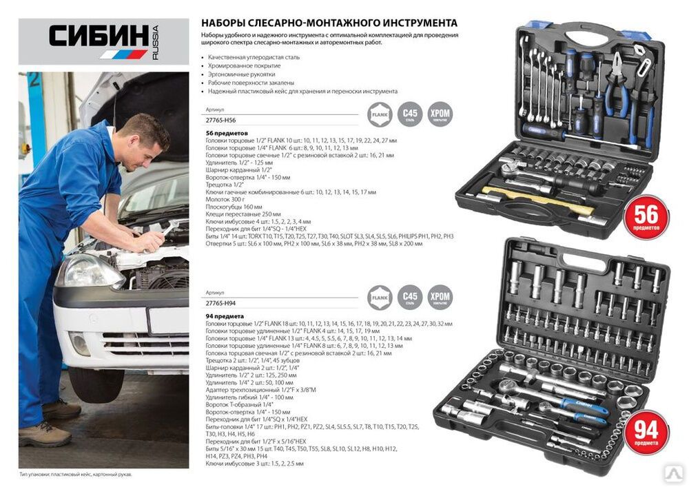 Читать все статьиУниверсальный набор инструмента 94 предметов СИБИН