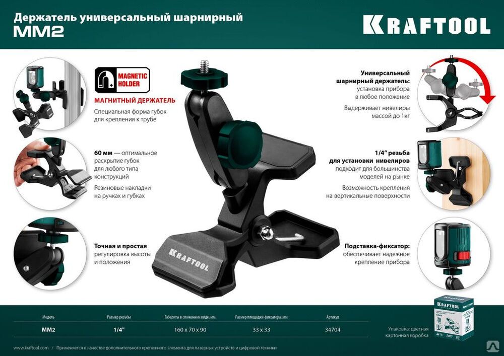 Читать все статьиУниверсальный шарнирный держатель- клипса, KRAFTOOL MM2