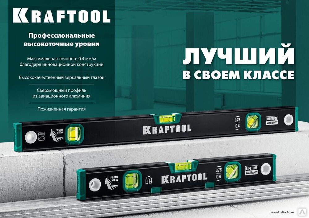 Читать все статьиУровень с зеркальным глазком Kraftool 1500 мм