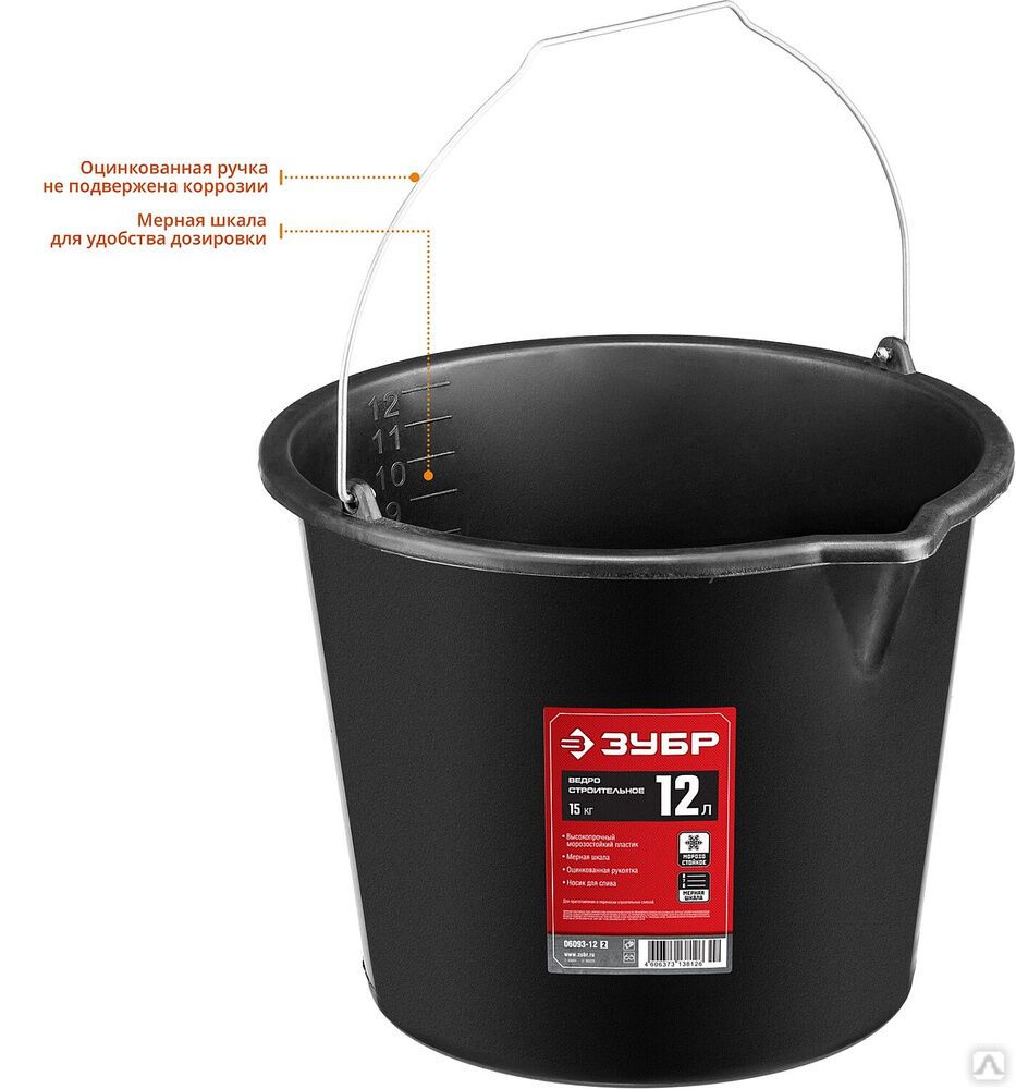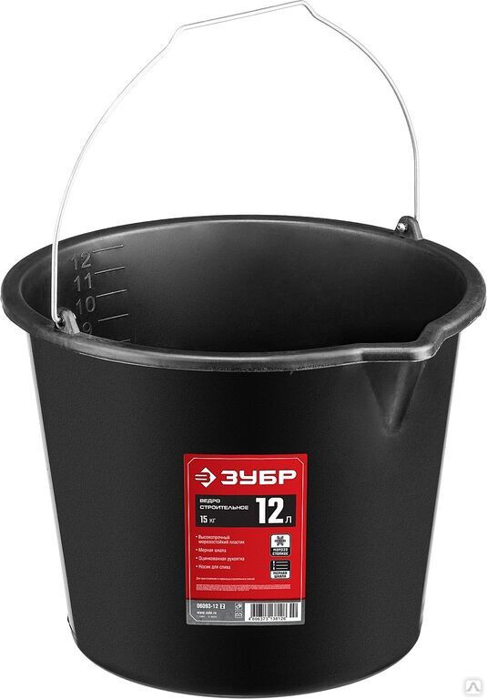 Читать все статьиВедро строительное пластмассовое, высокопрочное, с носиком ЗУБР 12л