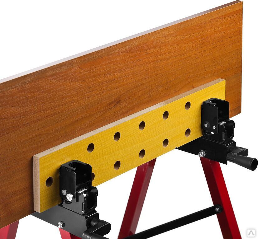 Незаменимый помощник в мастерской, в гараже и в домашних условиях. Предназначен для проведения столярных работ. Благодаря складному каркасу удобен в хранении и транспортировке. Столешница состоит из статической и подвижной части, фиксируемой двумя вращающимися ручками. Для удобства в работе столешница оснащена отверстиями и фиксаторами заготовок любой формы.