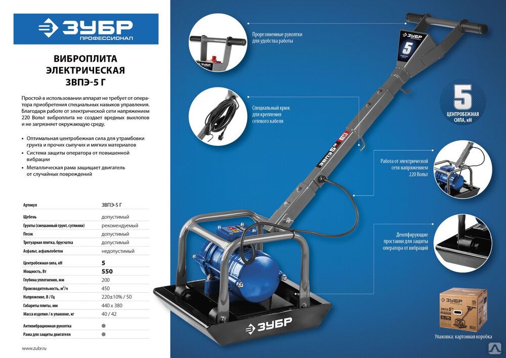 Читать все статьиВиброплита электрическая, 5 кН, ЗУБР Профессионал
