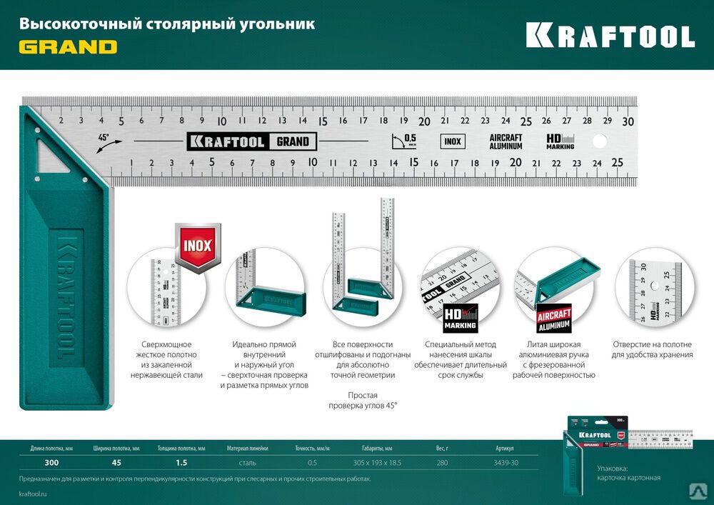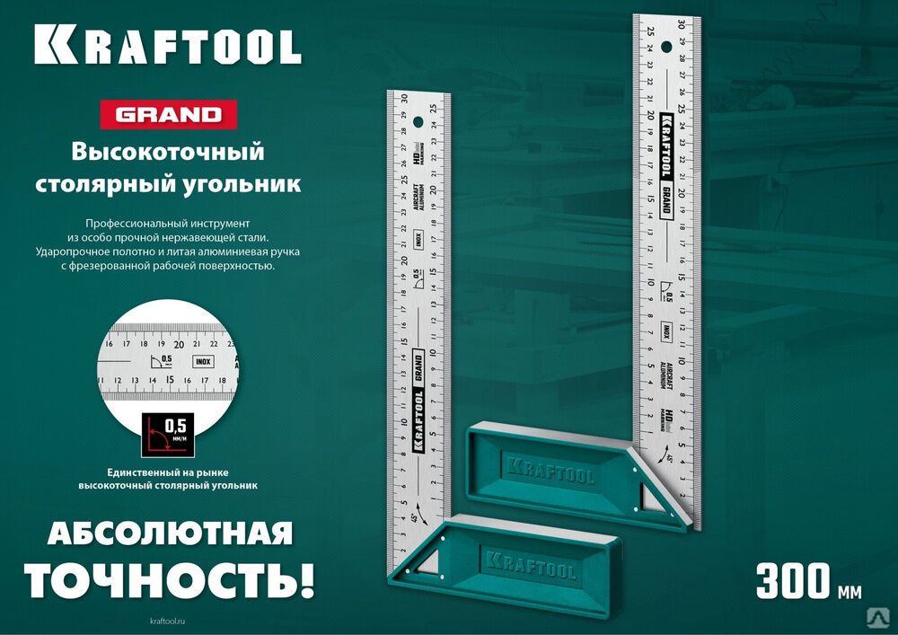 Читать все статьиВысокоточный столярный угольник Kraftool GRAND 300 мм