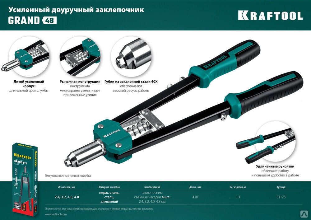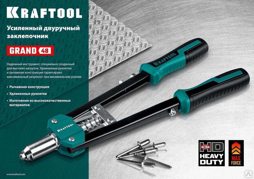 Читать все статьиЗаклепочник Усиленный двуручный KRAFTOOL GRAND-48