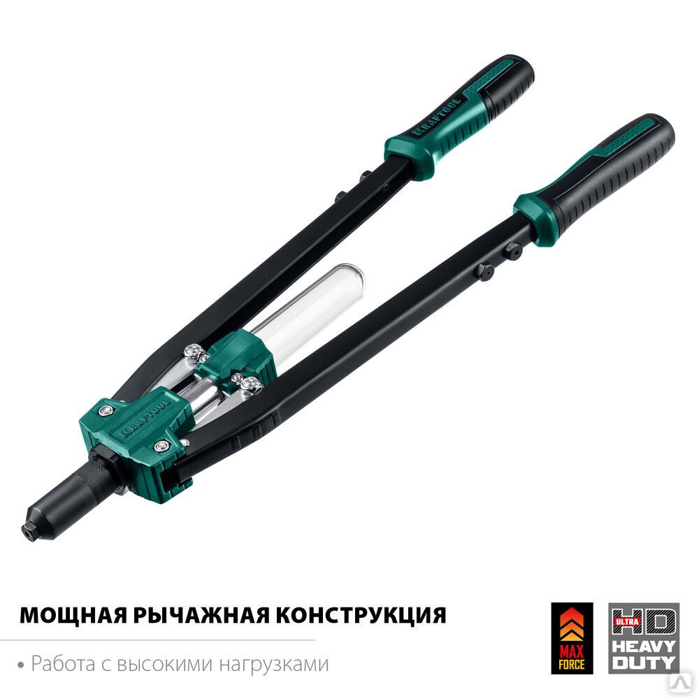 Заклепочник KRAFTOOL рычажный выдерживает большие нагрузки и предназначен для установки заклепок из любых видов материалов при профессиональных и индустриальных работах.