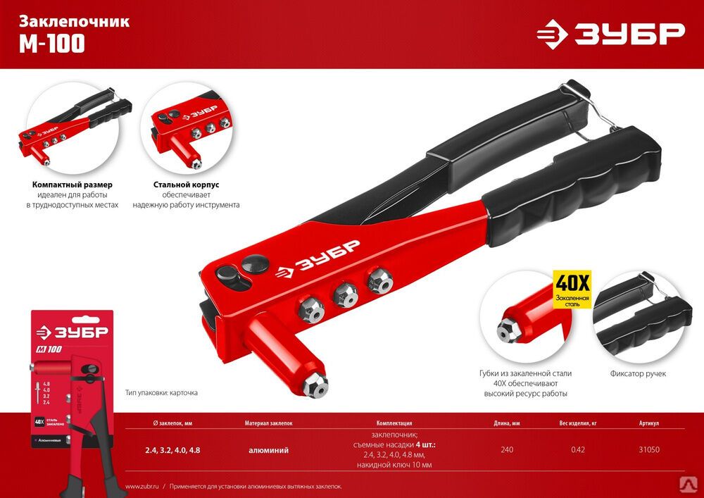 Читать все статьиЗаклепочник ЗУБР M-100, cтальной корпус