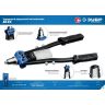 Применяется для установки нержавеющих, стальных и алюминиевых вытяжных заклепок. Способ применения: 1. Просверлите отверстие 2. Установите заклепку в заклепочник, а затем в отверстие 3. Сжимайте и разжимайте рукоятки заклепочника до момента откусывания хвостовика заклепки 4. Заклепка установлена