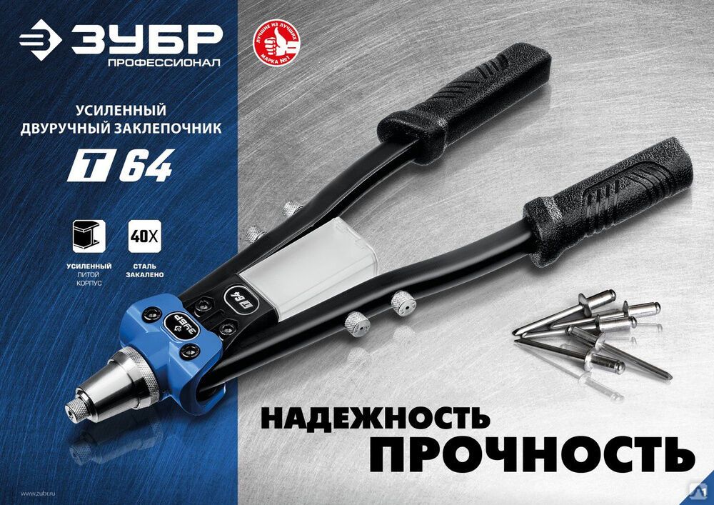 Читать все статьиЗаклепочник ЗУБР Т-64 усиленный двуручный, Профессионал