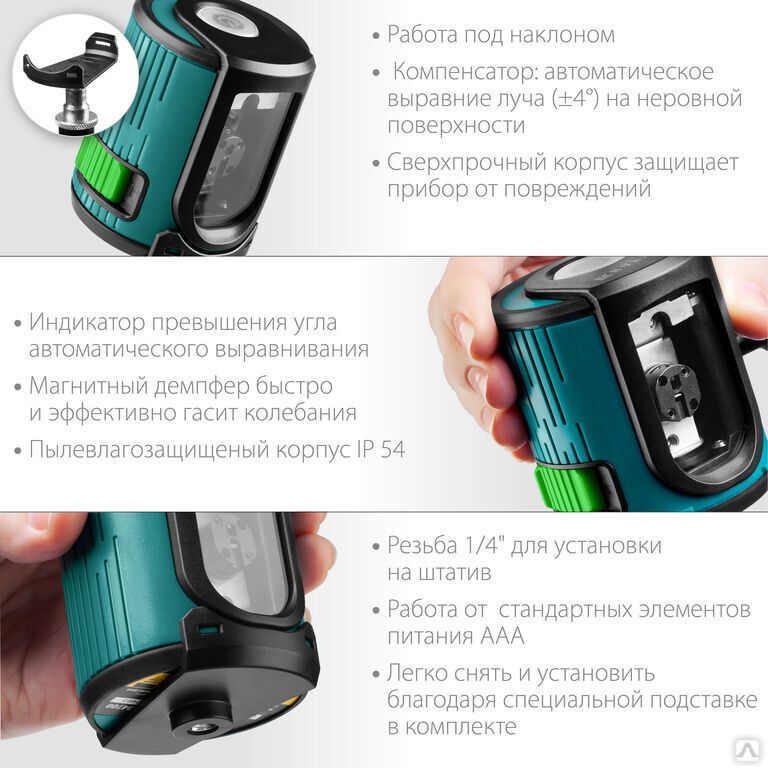 Функция самовыравнивания устраняет необходимость настройки, гарантирует максимальную точность при разметке.